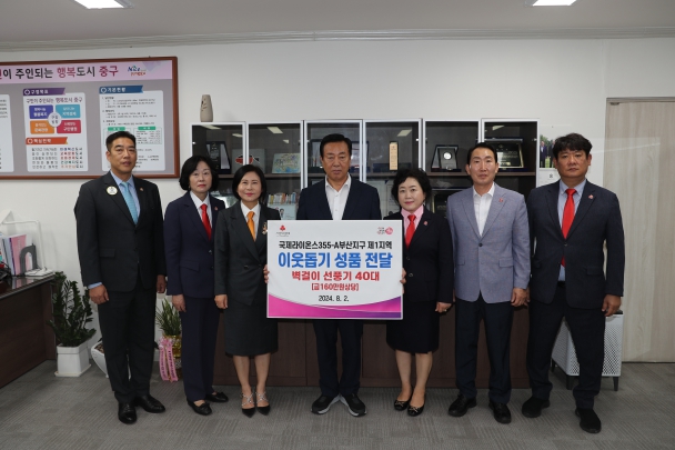 최진봉 중구청장은“지역 복지사업을 위한 라이온스의 후원에 감사드리며, 지속되는 무더위에 어려움을 겪고 있는 독거노인 등 취약계층에 잘 전달하겠다”고 말했다.