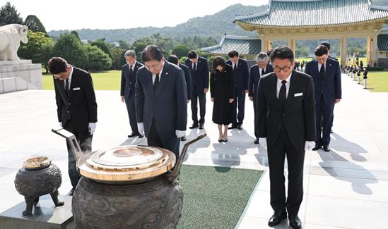 [뉴스서치] 부산광역시의회는 8월 14일 오전 9시, 대한민국시도의회의장협의회 안성민 회장을 비롯하여 전국 시도의회의장들이 국립대전현충원을 방문하여 호국선열과 호국영령의 숭고한 넋을 기리며 분향과 참배를 시작으로 첫 공식일정을 수행했다고 밝혔다.