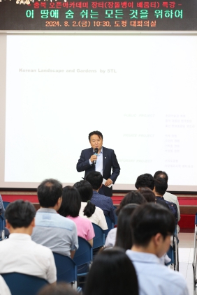 [뉴스서치] 충북도는 8월 2일 도청 대회의실에서 정영선 조경가를 초청해 충북 오픈아카데미 장터(장돌뱅이 배움터) 특강을 개최했다. 이날 특강은 김영환 지사를 비롯해 도 실국장 및 직원, 출자·출연기관 관계자 등 100여 명이 참석한 가운데 열렸다.