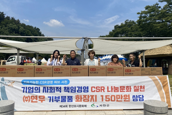 ㈜연우는 지난해 5월 서천군과 CSR 업무협약을 체결한 이후, 전년도 한산모시문화제에 화장지를 기부한 바 있으며, 올해도 연이어 천연 소재의 화장지를 나눔했다.