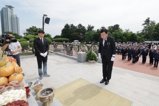 오전 9시 50분부터 국민의례를 시작으로 순국선열과 전몰호국 영령에 대한 묵념, 기관·단체장의 헌화 및 분향, 추념사, 헌시 낭독, 현충일 노래 제창 순으로 진행됐다.