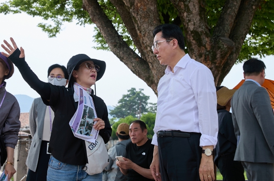 이날 박 시장은 외암마을 입구부터 시작해 상류층가옥-건재고택-오선분가옥-참봉댁-참판댁-저잣거리까지 프로그램이 진행되는 모든 장소를 둘러보며, 설치된 시설물과 프로그램 준비 상황을 점검했다.
