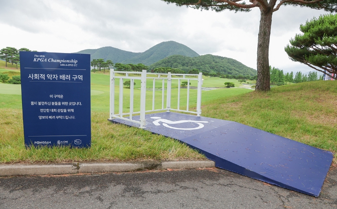 특히 대회장 내 설치된 ‘KPGA 선수권대회’ 대형 트로피 포토존은 큰 관심을 끌었고 18번홀에는 사회적 약자 전용 관람석을 별도로 설치해 관람의 편의를 제공했다.