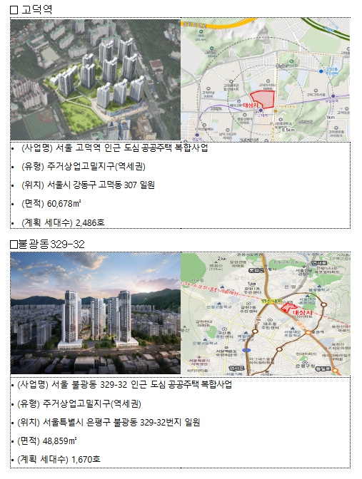 ▲ 신규 도심 공공주택 복합지구 2곳 사업 개요