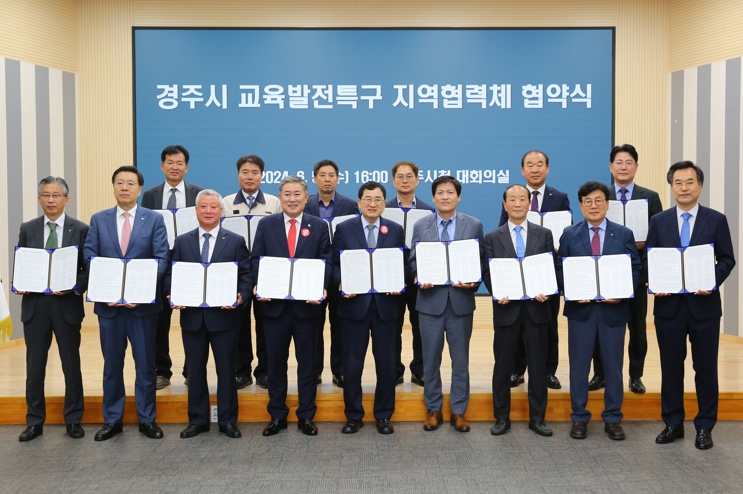 경주시는 지난 5일 청사 내 대회의실에서 경주시의회, 경주교육지원청, 지역대학·고교, 지역기업과 지역협력체 출범식 및 업무협약을 체결했다.