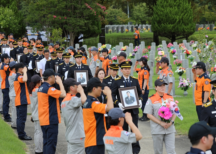 [뉴스서치] 서울시 소방재난본부는 8월 26일 국립대전현충원(소방공무원 묘역)에서 순직 소방공무원 6位(위)에 대한 합동 안장식을 거행했다고 밝혔다.