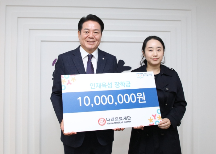 올해 나래의료재단이 기부한 1천만원은 예기치 못한 질병이나 가정환경으로 인해 어려움을 겪고 있는 관내 학생들을 위한 행복나래 지정장학금으로 지급될 예정이다.