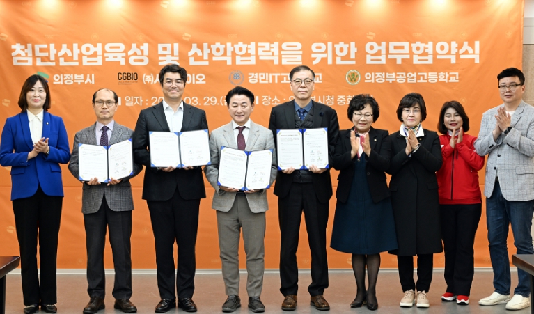 [뉴스서치] 의정부시의회는 29일 오전 의정부시청 중회의실에서 진행된 ‘의정부시-㈜시지바이오-경민IT고-의정부공업고 첨단산업육성 및 산학협력을 위한 업무협약식’에 참석했다.