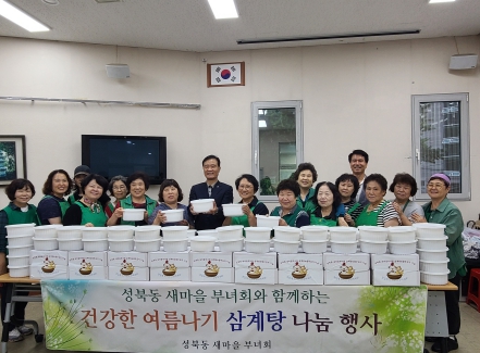 성북동 새마을부녀회원들은 자칫 여름철 건강을 해치기 쉬운 취약계층 이웃과 홀몸 어르신들을 위해 동주민센터에 모여 정성껏 삼계탕을 끓이고 시원한 열무 물김치를 만들어 150여 세대에 전달했다.