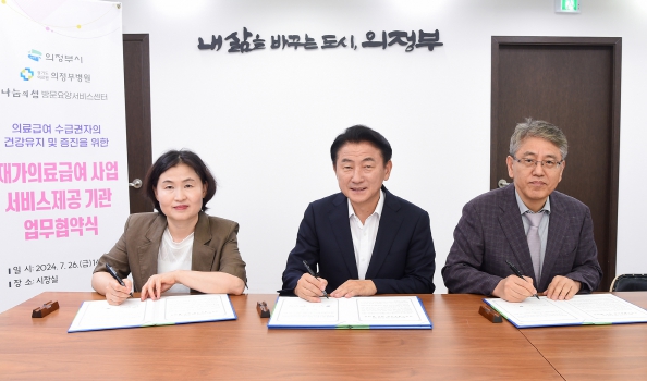 [뉴스서치] 의정부시는 재가 의료급여사업 추진을 위해 7월 26일 경기도의료원 의정부병원 및 나눔의샘 방문요양서비스센터와 서비스 제공기관 업무협약을 체결했다.