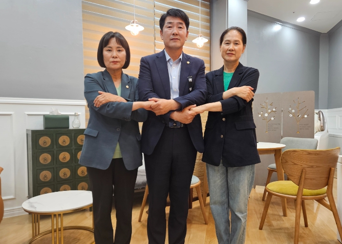 ▲ 후반기 원구성에 합의한 화성시의회 의원(좌로부터 위영란 의원, 배정수 의장, 김미영의원) |