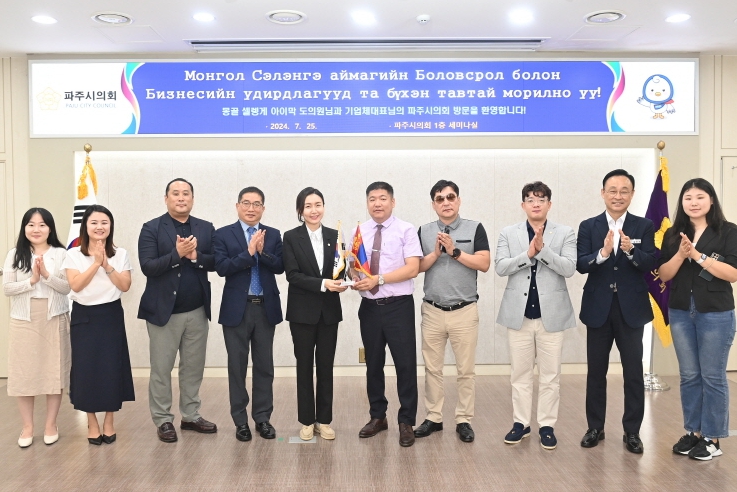 [뉴스서치] 파주시의회는 25일 파주시의회 1층 세미나실에서 파주시를 방문한 몽골 셀렝게 아이막 도의원, 몽골 기업인 대표와 간담회를 갖고 사회적경제기업 활성화에 대한 방안을 논의했다.