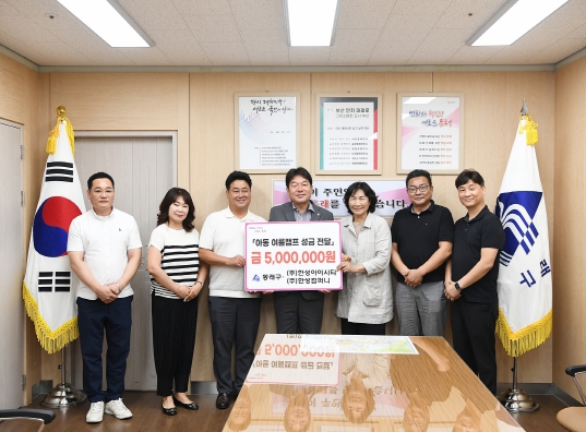 ▲ ㈜한성아이시티・(주)한성컴퍼니, 부산 동래구 지역아동센터 여름캠프 성금 500만원 전달 |