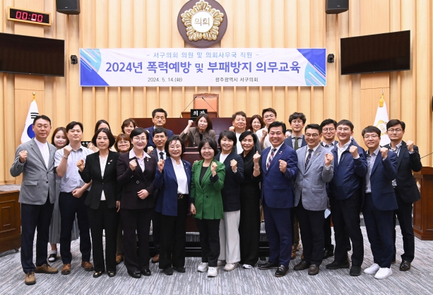 [뉴스서치] 광주광역시 서구의회는 14일 의회 본회의장에서 외부 강사를 초빙하여 서구의원과 의회사무국 직원을 대상으로 4대폭력 예방교육을 실시했다고 밝혔다.