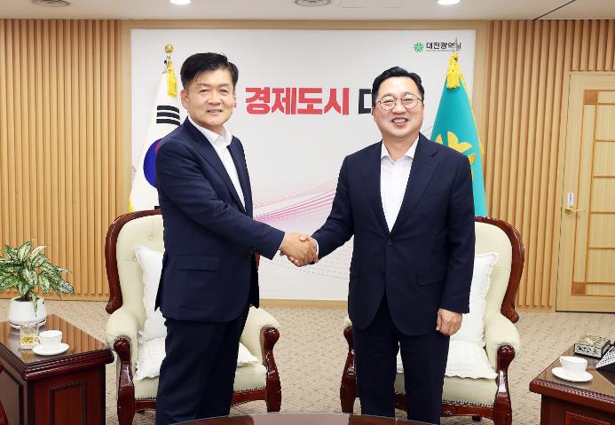 [뉴스서치] 대전광역시 유성구의회 김동수 의장이 9일, 대전광역시청을 방문하여 이장우 시장과 환담을 갖고 유성구와 대전시의 상호 협력과 발전방안을 논의하는 시간을 가졌다.