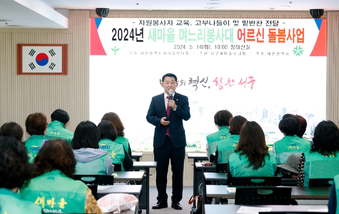 [뉴스서치] 대전 서구는 14일 구청 장태산실에서 새마을며느리봉사대 72명이 참석한 가운데 어르신 돌봄 봉사단 교육을 실시했다.