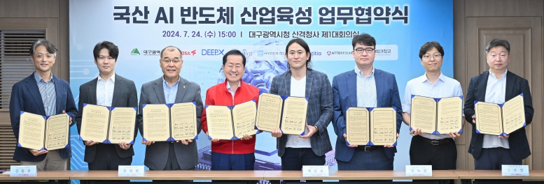 [뉴스서치] 대구광역시는 7월 24일 오후 3시 대구시청 산격청사에서 국내 AI반도체 시장을 선도하는 대표기업들과 ‘국산 AI반도체 산업육성 및 대구시 반도체 산업역량 강화’를 위한 업무협약을 체결했다.