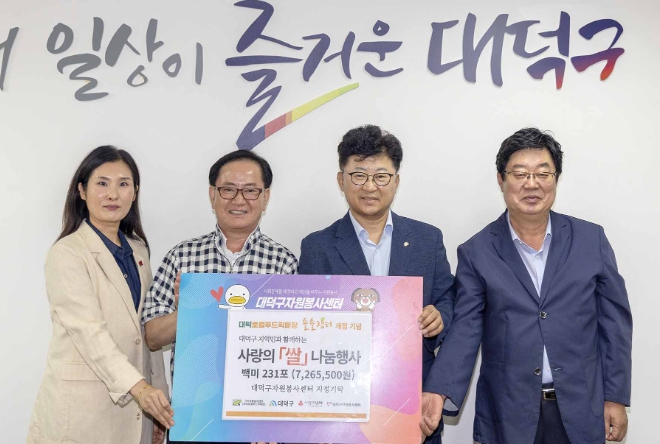 이번 백미는 로컬푸드 직매장 개소 시 참석자들로부터 축하화환 대신 받은 것으로, 대덕구는 기탁받은 백미를 대덕구자원봉사센터 지정기탁을 통해 취약계층에게 전달할 예정이다.