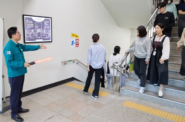 한편 박경귀 시장은 이날 훈련에 대피 유도 요원으로 동참해 직원들의 신속하고 안전한 대피를 유도했다.