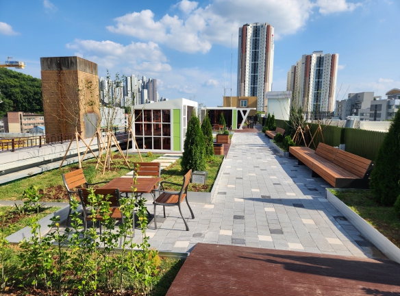 지난해 7월 신관·동관 옥상 하늘정원 1,100㎡를 시작으로 이번 동관 옥상에 하늘정원 600㎡를 연계 완성했다.