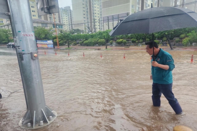 [뉴스서치] 백성현 논산시장이 7일 밤부터 내린 폭우로 인해 피해가 발생한 지역을 돌며 더욱 세심한 안전관리와 철저한 대책 마련을 지시했다.