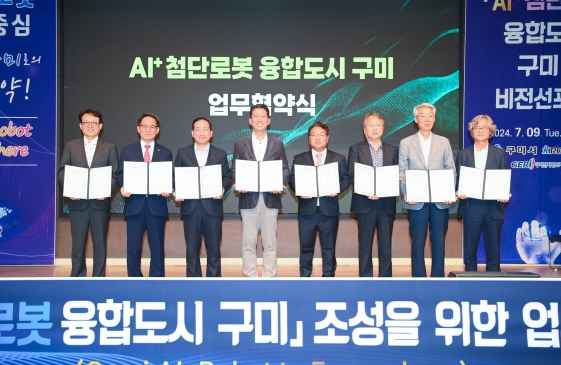 [뉴스서치] 구미시는 9일 구미코에서 구미로봇기업협의회, 연구기관, 대학교, 경제단체 등 100여 명이 참석한 가운데 'AI+ 첨단로봇 융합도시 구미 비전선포식'을 개최했다.