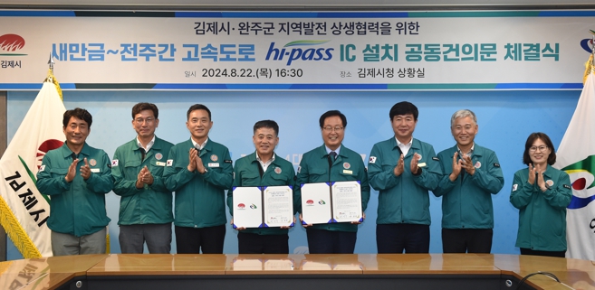 [뉴스서치] 김제시와 완주군이 지역발전 상생협력 사업으로 새만금~전주간 고속도로 용지면과 완주군 이서면 경계에 하이패스 IC 설치를 위해 손을 맞잡았다.