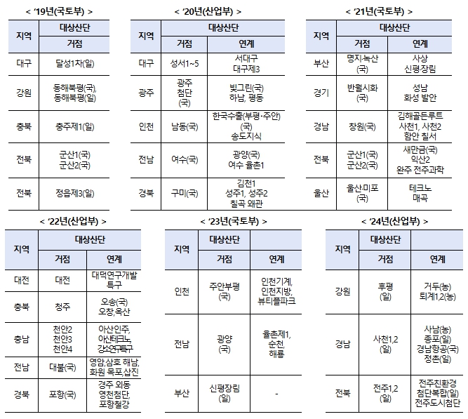 ▲ 노후거점산단 경쟁력강화사업지구 지정현황 |