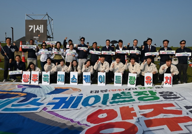 파주시 임진각평화누리에서 열린 이번 대회에 양주시는 대형 현수막과 피켓 퍼포먼스를 하며 국제스케이트장 유치 의지를 강렬하게 표현했다.