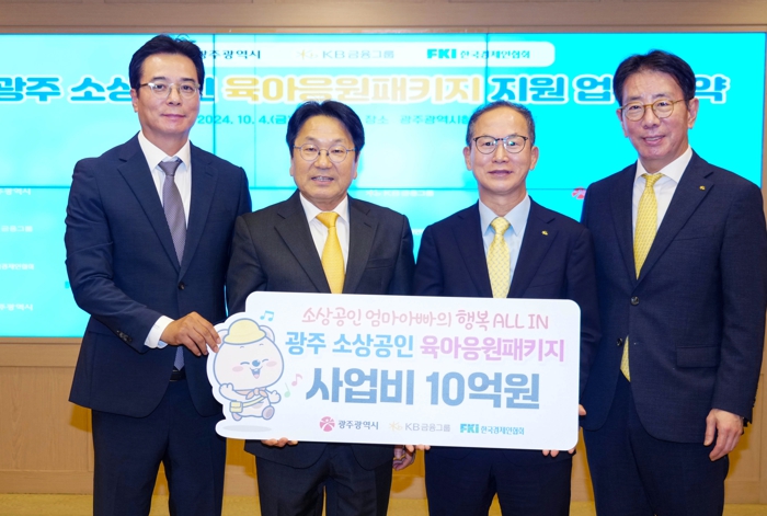 [뉴스서치] 광주광역시는 KB금융그룹, 한국경제인협회와 함께 지난 4일 오후 시청 비즈니스룸에서 광주 소상공인의 출산과 육아를 돕는 ‘광주 소상공인 육아응원패키지 지원 업무협약’을 체결했다.