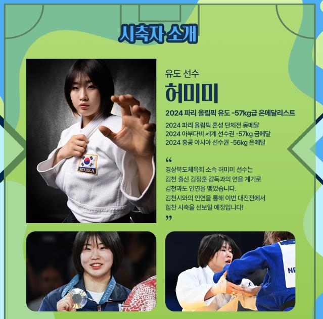 허미미 선수는 김천 출신의 김정훈 경상북도체육회 감독을 통해 맺은 인연을 바탕으로 경기 시작 전 시축으로 김천상무의 홈경기 승리를 응원한다.