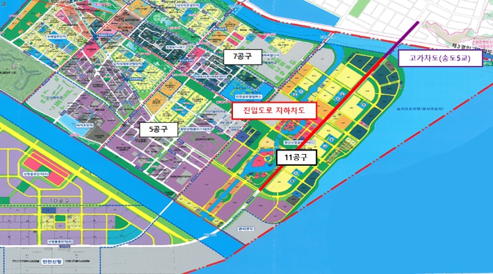 그러나, 인천신항이 본격적으로 조성되는 과정에서 기존 진입도로를 확장하면 대형차량 통행으로 주거지역 및 학교시설 등에 대한 소음, 분진 등의 공해를 일으킬 수 있고, 교통사고도 증가하여 인명 피해도 발생할 수 있다는 우려가 제기되어 진입도로 확장 대신 도로 하부에 지하차도를 건설하는 방안을 추진하게 됐다.