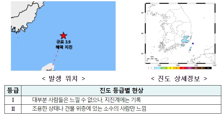 | ▲ 지진발생 위치 및 진도 상세정보 |