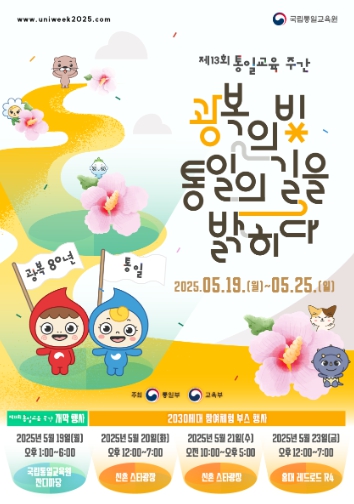 [뉴스서치] 통일부와 교육부는 5월 19일부터 25일까지 “광복의 빛, 통일의 길을 밝히다”라는 슬로건으로 제13회 통일교육주간을 개최한다.
