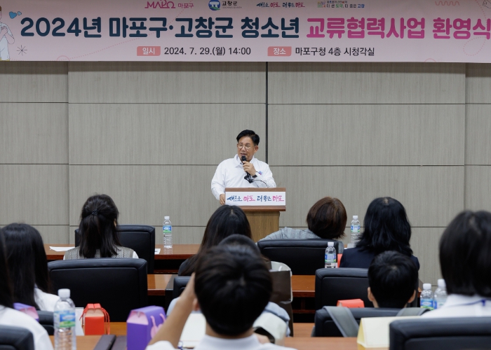 [뉴스서치] 박강수 마포구청장은 29일 오후, ‘마포구-고창군 청소년 교류협력사업 환영식’이 열린 마포구청 시청각실을 찾아 참여 청소년들을 격려했다.
