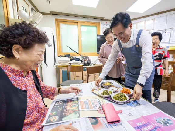 한 어르신이 중식도우미 및 경로당 청소 인력을 더 늘려줄 수 있냐고 묻자 “어르신들에게 양질의 식사를 제공함과 동시에 어르신일자리까지 늘어나는 선순환 구조라서 확대하는 방안을 적극 검토하겠다”고 답했다.