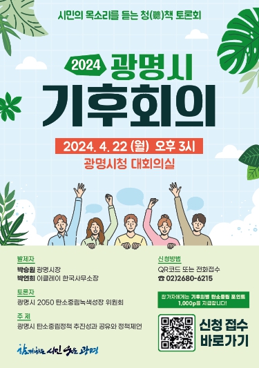 박승원 광명시장은 “광명시 탄소중립의 미래는 광명시민이 결정하고 만들어 가야 한다”며 “광명시가 지속가능한 도시로 나아가기 위해 반드시 필요한 탄소중립 정책에 시민의 목소리를 담는 이번 기후회의에 적극 참여해 달라”고 전했다.
