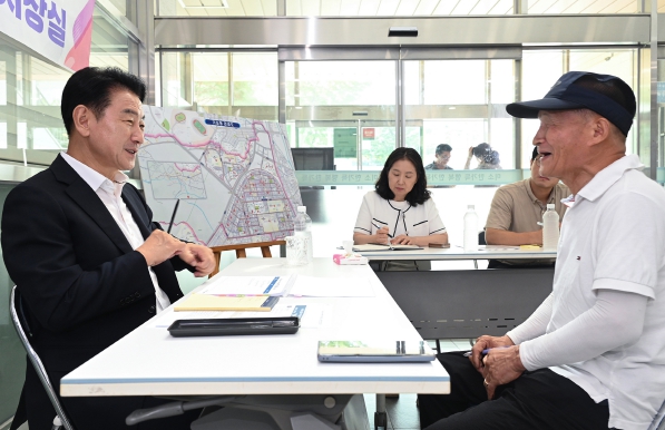 ▲ 김동근 시장이 8월 23일 가능동 주민센터에서 ‘현장시장실’을 열고 주민들과 소통하고 있다. |