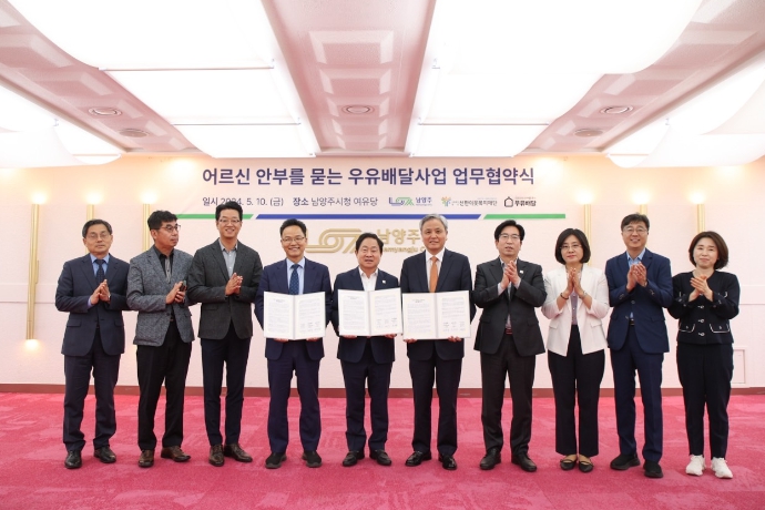 이날 협약식은 주광덕 남양주시장을 비롯한 호용한 이사장, 정귀석 이사장 등이 참석했으며, 협약기관은 각각 △사업 대상자 발굴 및 모니터링 △우유배달 및 안부 확인 서비스 총괄 △후원금 지원을 약속했다.