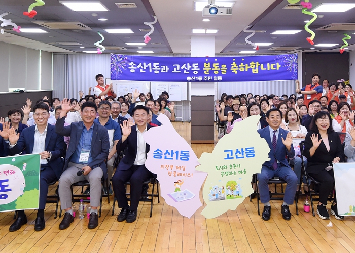 이 밖에도 이날 주민총회에서는 7월 1일자로 분리된 송산1동과 고산동의 분동을 기념하는 퍼포먼스도 선보였다.
