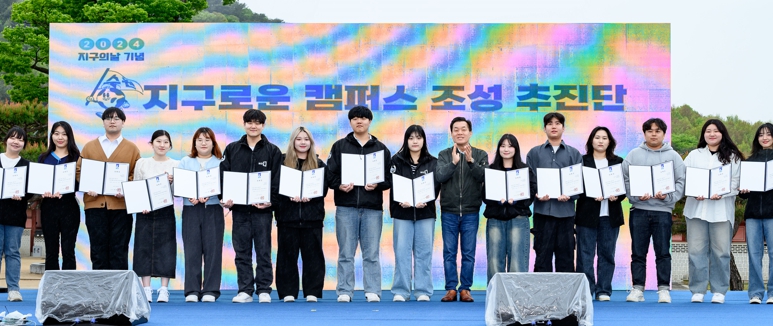 위촉식은 제54회 지구의 날 행사가 열린 20일 행궁광장에서 진행됐다. 경기대학교 학생 17명을 지구로운 캠퍼스조성 추진단으로 위촉했다.