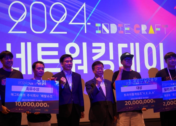 [뉴스서치] 성남산업진흥원과 한국모바일게임협회는 7월 4일 낮 4시에 판교 그래비티 호텔 지하1층 스튜디오 볼룸에서 ‘2024 인디크래프트 우수 개발자 시상식’을 개최했다.