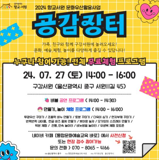 [뉴스서치] 울산 중구가 6월부터 10월까지 네 차례에 걸쳐 구강서원에서 2024 향교·서원 국가유산 활용사업의 일환으로 ‘유학콘서트-공감장터’ 행사를 개최한다.