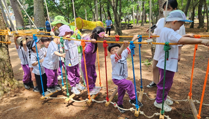 동구는 이번 숲체험 프로그램을 앞두고 맨발숲길과 밧줄체험장을 조성하고 모래놀이터의 그늘막을 설치하고 모래를 교체했으며, 음수대와 세족장 등 편의시설을 정비해 숲 체험장을 조성했다.