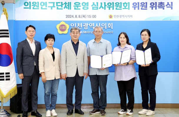 [뉴스서치] 인천광역시의회는 8일 의장 접견실에서 의원 연구단체 운영 심사위원회 위원 6명(외부전문가)을 위촉했다.