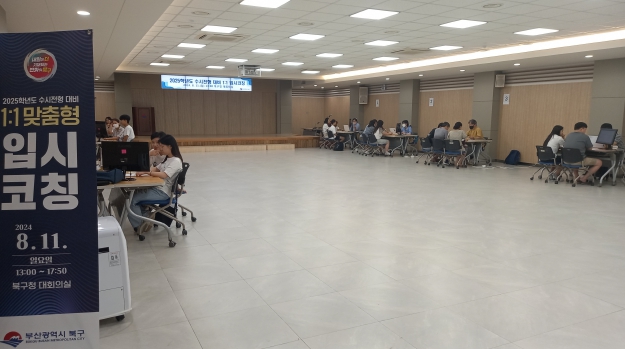 [뉴스서치] 부산 북구는 지난 11일 구청 대회의실에서 2025학년도 대입을 앞둔 고3 학생을 위해 수시전형 대비 1:1 입시 코칭을 운영했다고 밝혔다.