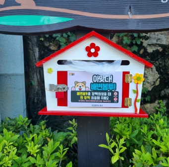 현재 배변봉투함은 ‘증산공원 입구’와 ‘구봉산치유숲길 입구’ 안내판 아래쪽에 설치되어 있으며, 주민들의 의견을 반영하여 확대 설치 및 운영할 계획이다. 필요한 반려인은 누구든지 배변봉투함을 이용할 수 있다.