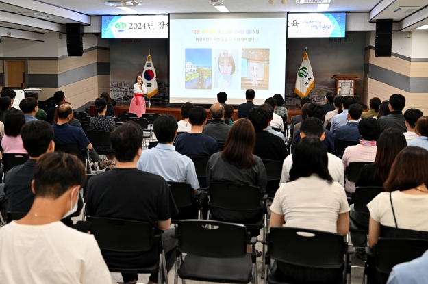 이번 교육은 장애인복지법에 따른 법정 의무교육으로 한국장애인개발원 장애인식개선 교육 박은주 전문 강사가“인식의 변화로 모두가 행복한 세상”이라는 주제로 인권과 관련된 법과 제도, 장애가 가지는 다양성에 대한 존중, 장애인 접근성에 대한 이해 등 장애인식 개선을 도모하는 내용으로 교육을 진행했다.