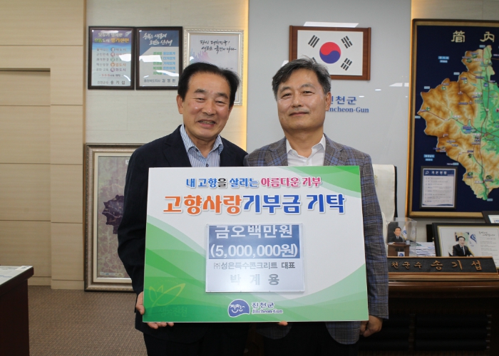 ▲ 박계용 ㈜성은특수콘크리트 대표, 진천군에 500만 원 통 큰 기부 |