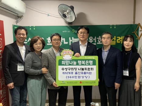 [뉴스서치] 대구 수성구희망나눔위원회는 지난 17일 취약계층 이웃 지원을 위해 출산용품(560만원 상당)을 수성구청에 전달했다.